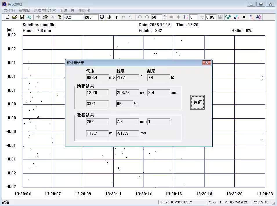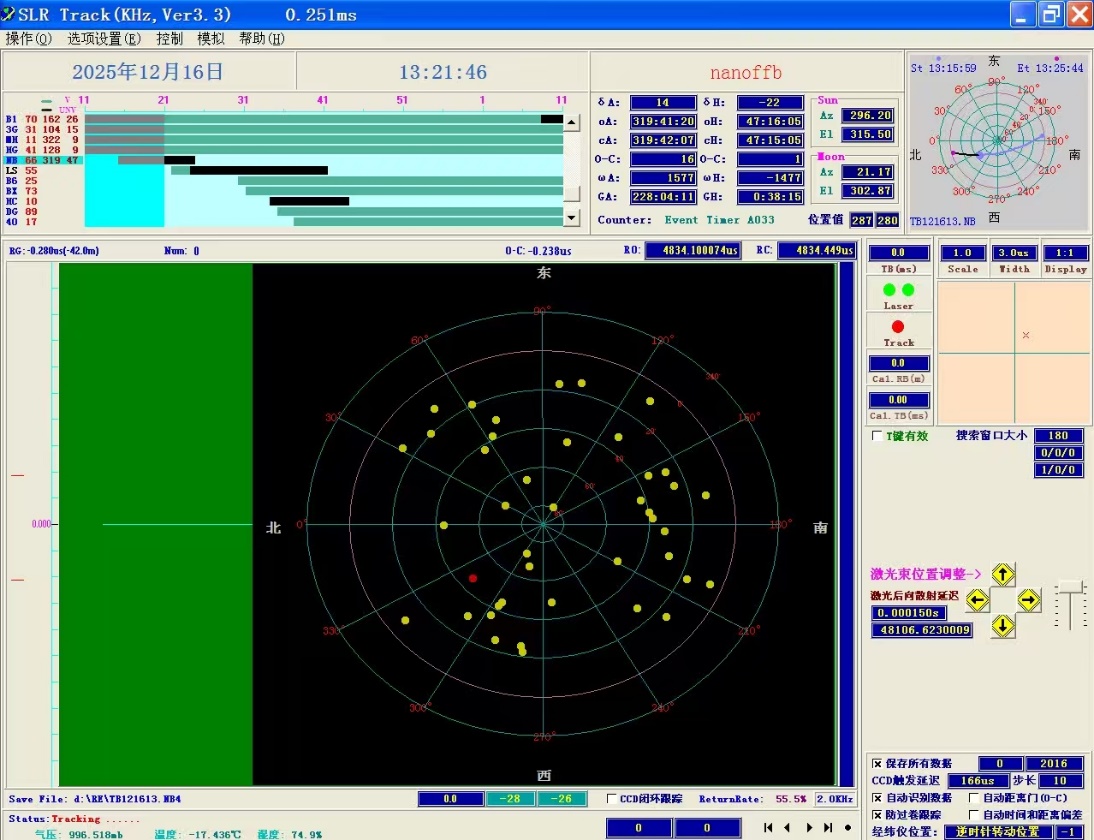 2025年12月16日,长春SLR站成功获取最新加入国际卫星激光测距服务组织(ILRS)的NanoFF-B卫星观测数据,数据处理获得数据点数262点,精度7.6mm,时间偏差为-517.9ms,距离偏差为119.7m。观测过程中通过及时修正卫星预报的时间偏差及距离偏差值,成功获得了该颗卫星的有效观测数据。 NanoFF是一项专注于推进近地轨道距离操作技术的Nano卫星编队飞行试验任务,于2023年12月1日搭乘SpaceX猎鹰9号运载火箭成功升空。其核心目标是在近距离执行受控机动时确保无碰撞运行,为未来卫星维护与检测应用奠定重要基础。该任务由两颗2U立方体卫星NanoFF-A与NanoFF-B组成,每颗2U立方体卫星质量为3.2kg,尺寸为100mm×100mm×227mm。NanoFF-B于2024年1月10日,借助D-Orbit公司的ION轨道转移飞行器,被精确释放至精心设计的轨道,并成功进入运行状态。 卫星激光测距(SLR)技术将为验证NanoFF任务开发的绝对与相对导航算法提供基础数据支撑。长春人卫站卫星激光测距系统将始终锚定高水平运行标准,筑牢常态化观测服务根基,不仅为在轨航天器状态监测提供高精度数据支撑,更为全球科学研究领域贡献中国力量。